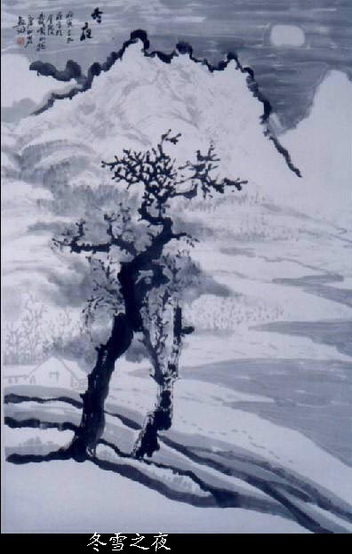 Pine Tree on Rock of Taishan Mountain --- Tao Generates Cosmos --- Fishing out Cave --- Winter Snowing Night ---