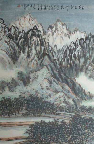 Towering Mt Songshan 45x70cm - Just after a Spring Rain 70x45cm - Towering Mt Songshan --- for The Centenary Yongchun 1st High School 45x70cm -