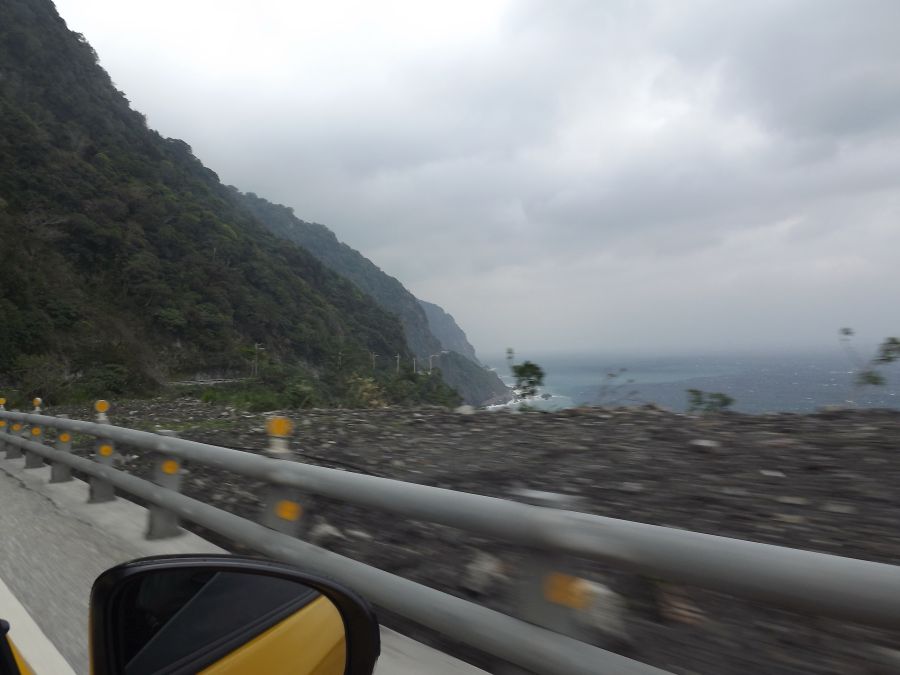 苏花公路修筑在陡崖峭壁上,濒临太平洋,很是惊险。此为沿途之一。
